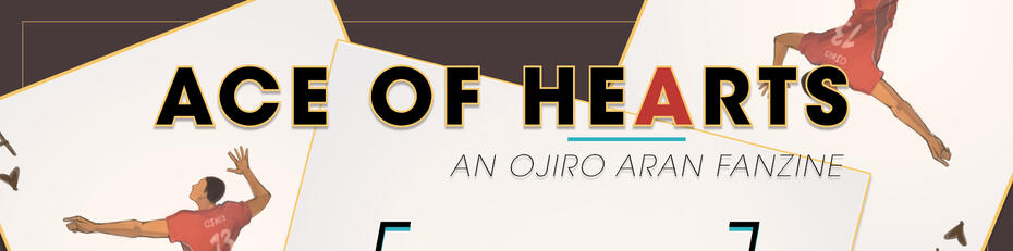 Welcome to Ace of Hearts, a charity fanzine dedicated to Ojiro Aran - Inarizaki alumnus; Tachibana Red Falcons' outside hitter; Olympian; and most importantly, the ACE! - and the impact he's made on the volleyball world, featuring the friends and teammates he's met along the way.This will be a gen, SFW, and canon-compliant zine. It will follow Aran's journey from childhood, through high school, and all the way to adulthood. Note: It will feature post-timeskip content, so it will contain manga spoilers.We intend to have a variety of content including fics, art, player interviews, and a spread featuring mementos from friends and teammates. We encourage creativity in contributions!**Zine specs: **